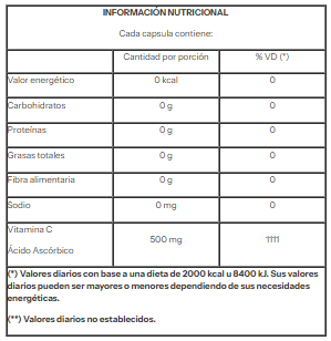 colágeno, manteniendo la piel, los dientes y el sistema circulatorio en buen estado. Nuestra fórmula extraída de fuentes naturales es altamente efectiva y biodisponible. Puede ser ingerida en cualquier momento del día o bien 30 minutos antes o después de cualquiera de las principales comidas, para su correcta y total absorción.