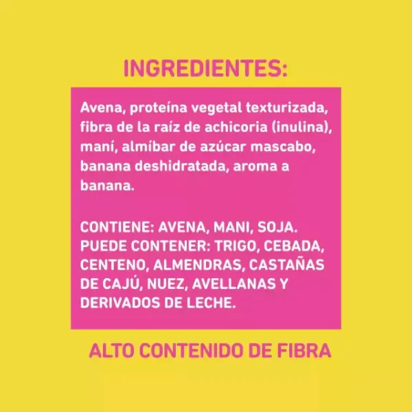 Una barra diseñada para ofrecer nutrición y sabor en cada bocado. Con 7 g de proteína vegetal y 7 g de fibra, aporta saciedad y energía sostenida, ideal para mantener tu día activo y equilibrado. Elaborada sin conservantes, combina avena, maní y banana deshidratada, logrando una textura suave y ligeramente crujiente con un dulzor natural y delicioso.